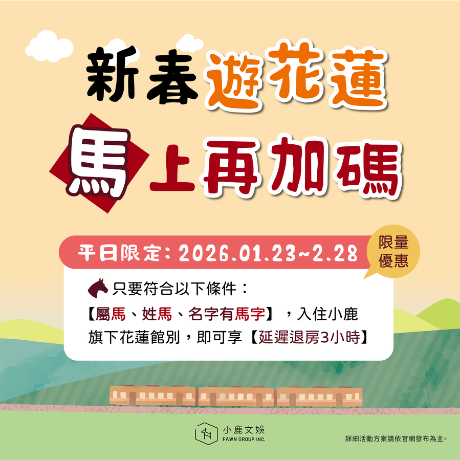 #新年快樂 #農曆春節 #新春 #恭喜發財 #馬上加碼 #優惠資訊 #花蓮旅遊 #花蓮景點 #睏到飽 #小鹿文娛 #有趣好玩