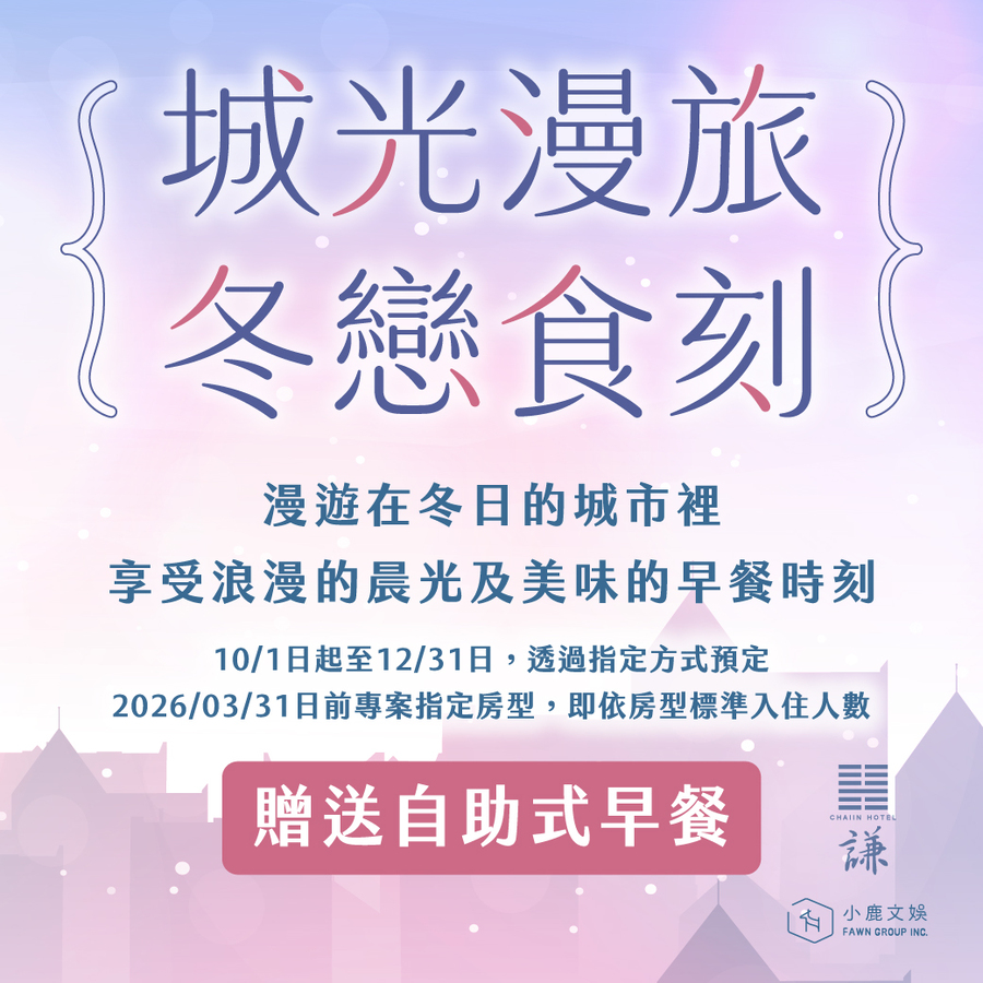 10/1日起至12/31日,透過指定方式預定2026/03/31日前專案房型,