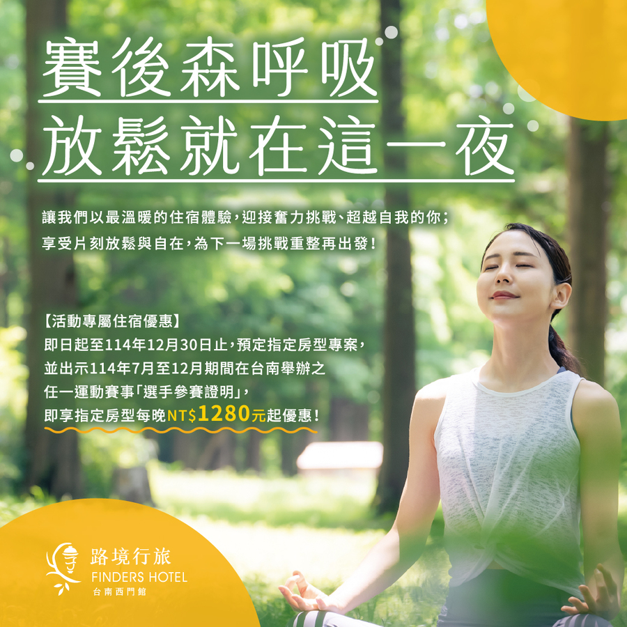 114年7月至12月台南任一運動賽事「選手參賽證明」,即可入住指定房型,享專屬優惠價格: